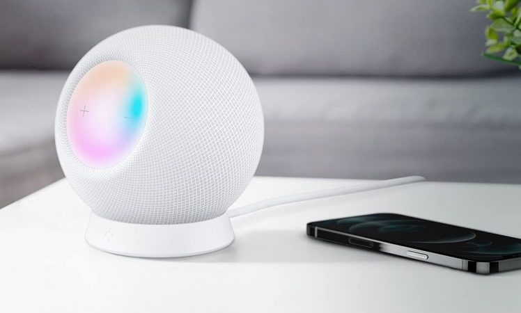 Der Zubehör-Hersteller Spigen hat einen Ständer für Apples HomePod mini im Sortiment.