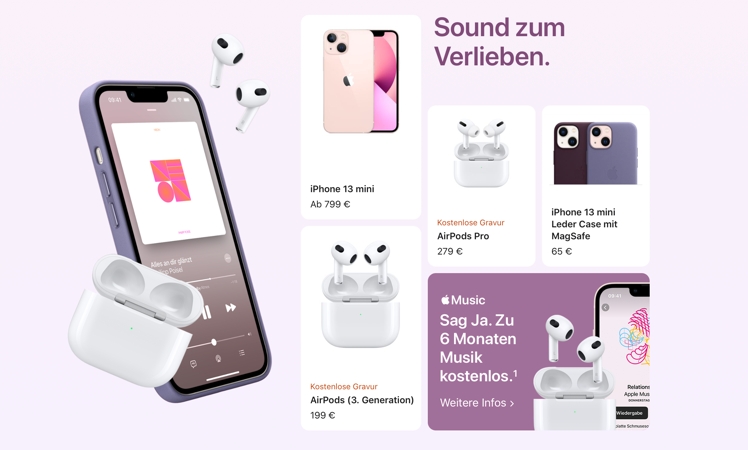 Unter dem Motto „Sag’s mit einem Geschenk von Apple“ findet Ihr unter folgendem Link Apple-Ideen zum Tag der Liebe. Dazu gehören iPhones, AirPods, Cases und mehr.