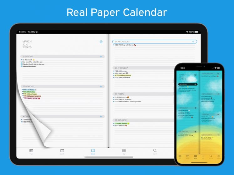 Paper Calendar ist eine eher unbekannte Kalender-App, die sich dank der 20 Themes sehr individuell gestaltet lässt. Auch die Wochenansicht gefällt uns. Mit 2,99 Euro zahlt Ihr einen Einmal-Preis, während viele andere Kalender-Apps inzwischen bekanntlich auf teure Abo-Modelle setzen. Insofern hat Paper Calendar aus unserer Sicht eine Chance bei Euch verdient, auch wenn es, wie bei Fantastical, keine Möglichkeit der Spracheingabe von Termin gibt.