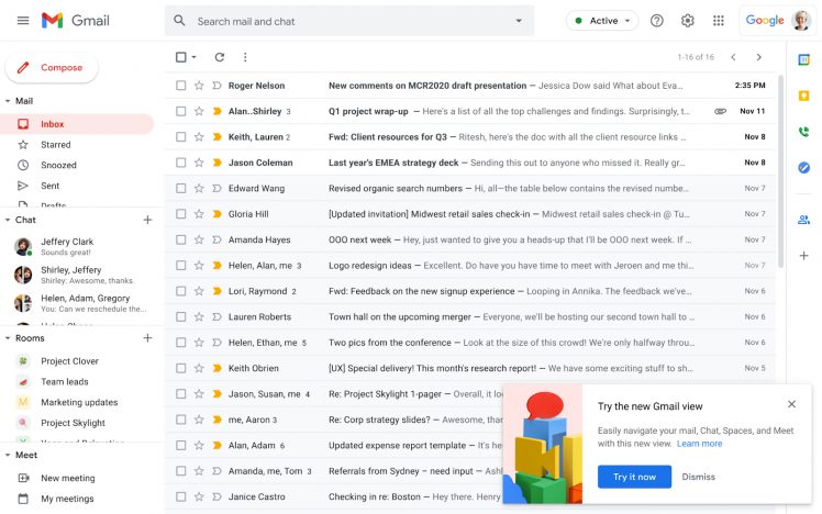 Der Email-Dienst bekommt eine verbesserte Integration von Emails, Meet, Chat und Spaces. Auch weitere Design-Änderungen kommen in die Browser-Version.