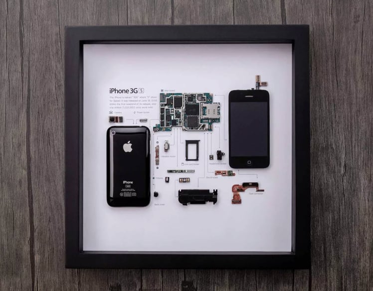 Wir veranstalten es zusammen mit den Machern der iPhone-Kunstwerke von Grid Studio. In Umweltschutz-Aktionen werden dabei alte iPhones auseinandergenommen, arrangiert und gerahmt verkauft.