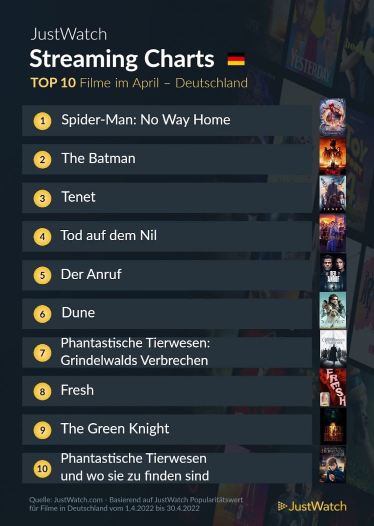 In unseren Grafiken seht Ihr einerseits, welche Filme und Serien den Monat April dominiert haben. Weiter unten hängen wir noch die aktuelle Wochenauswertung dran.
