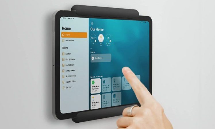 Die Halterung richtet sich an Käufer, die ihr iPad primär zur Steuerung ihres Smart Homes nutzen. Mit ihr könnt Ihr die Geräte an der Wand befestigen. Auf der Rückseite gibt es noch einen Freiraum.
