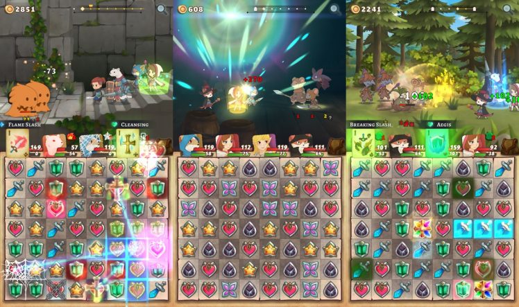 Ihr kontrolliert eine Gruppe von Helden, die zusammen gegen Monster losziehen. Die Kämpfe laufen ab, während Ihr Match-3-Rätsel löst. Jedes Match bringt Euch einen Angriff oder diverse Boni.