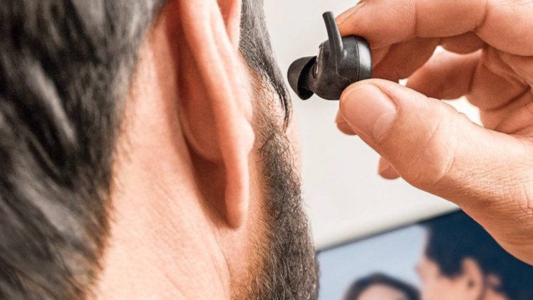 Die Ohrhörer kommen im Set mit einem „TV Connector“, der als Sender dient. Das Kästchen wird per Kopfhörerbuchse oder optischem Audioausgang an Euer TV angeschlossen. Die Übertragung zu den Ohrstöpseln erfolgt dann drahtlos per Bluetooth.