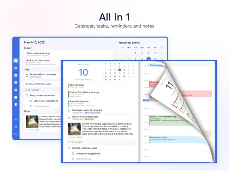 Alles in einem – das ist genau der Vorteil von Planmore. Es gibt eine praktische Übersichts-Seite, in denen alle wichtigen Details zum jeweiligen Tag zusammengefasst werden. Aber auch Wochen-, Monats- und Jahres-Ansichten lassen sich mit wenigen Wischs aufrufen. Der Smart Task Manager hilft Euch dabei, wichtige Aufgaben nicht aus den Augen zu verlieren.