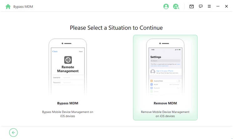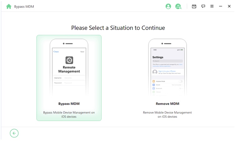 Schritt 2: Wenn Euer Gerät aus dem MDM-Sperrbildschirm ausgesperrt ist, tippt auf „MDM umgehen“ -> „Umgehung starten“. Dadurch wird der Umgehungsvorgang gestartet. Vergewissert Euch, dass Euer Gerät auf dem MDM-Sperrbildschirm verbleibt. iDelock wird das MDM auf Eurem Gerät sofort umgehen.