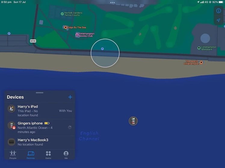 Als nach sieben Stunden die Ebbe einsetzte, konnte das iPhone eine Verbindung mit dem Internet herstellen. Daraufhin fand es der Besitzer mit der „Wo ist“-App, über die er sein iPhone geortet hatte. Es lag auf dem Grund des Ozeans.