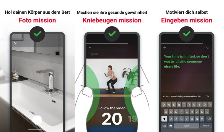Wenn der Wecker läutet, müsst Ihr eine Aufgabe erfüllen. Dazu gehören zum Beispiel das Lösen eines Mathe-Rätsels, das Knipsen eines speziellen Fotos oder eine besondere Sport-Übung, damit die App registriert, dass Ihr wirklich aus dem Bett geklettert seid. Als originellste Beispiele nennen die Entwickler: