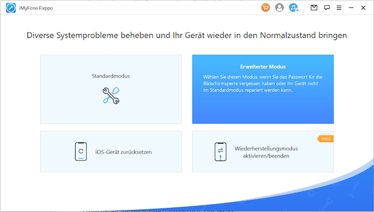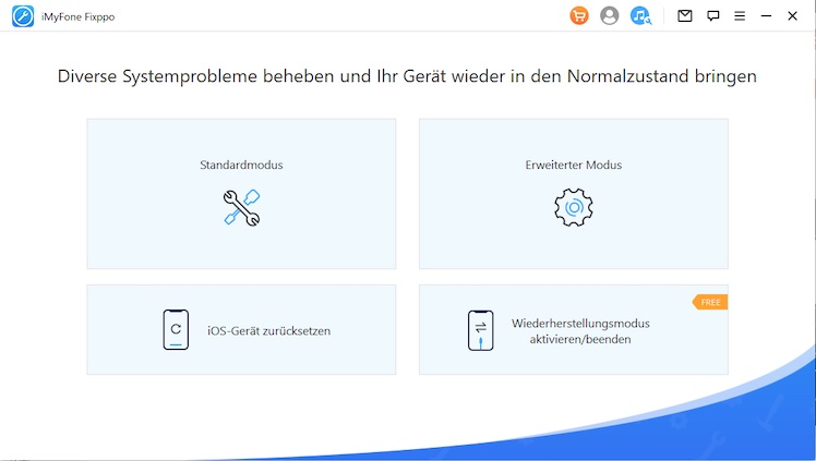 Das iOS-Reparaturtool iMyFone Fixppo, angeboten von iMyFone, kann diese Bugs und unterm Strich sogar rund 150 Apple-Systemprobleme, beheben. Darüber hinaus bietet die Software die Funktion, den Wiederherstellungsmodus mit 1 Klick zu aktivieren bzw. zu beenden, und das in der Basic-Version kostenlos bzw. erweitert in der Kaufversion.