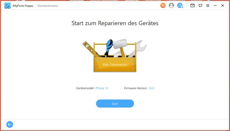 Schritt 3: auf „Start“ klicken, so beginnt die Reparatur automatisch.