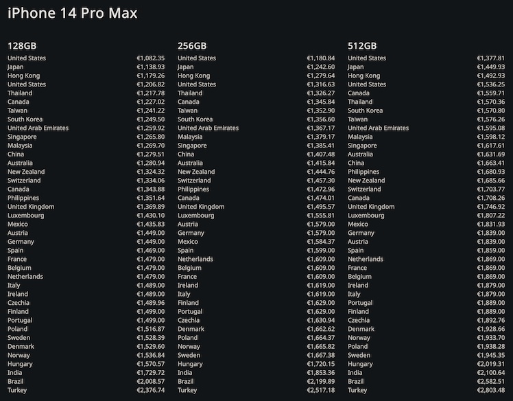 Ein neuer Vergleich zeigt, in welchen Ländern das iPhone 14 Pro/Max teuer und wo es „günstig“ ist.