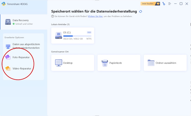Tenorshare 4DDiG bietet zwei Lösungen für zwei unterschiedliche Fälle. Ihr könnt beschädigte Videos reparieren mit 4DDiG Video-Reparatur reparieren, oder Ihr könnt beschädigte Fotos reparieren Bilder mit 4DDiG Foto-Reparatur reparieren.
