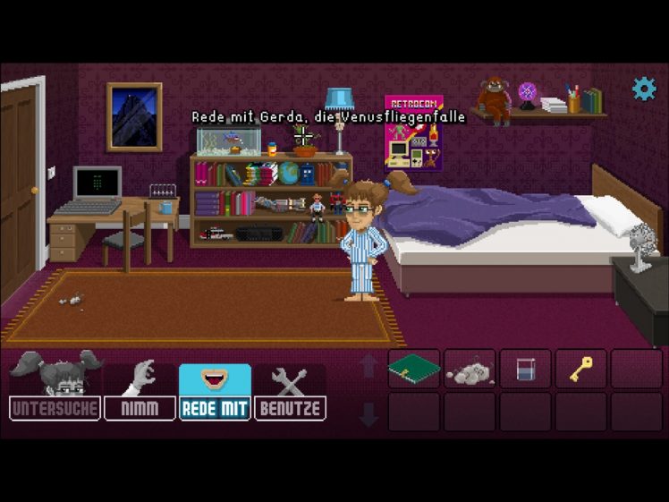 Das Gameplay erinnert an Spiele-Klassiker wie Monkey Island. Ihr könnt mit vielen Objekten in der Umgebung interagieren und löst so die vielfältigen Rätsel.