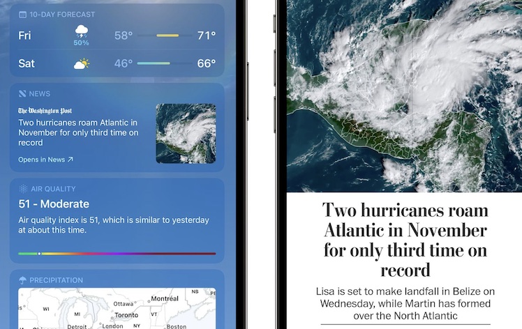 Mit iOS 16.2 beginnt Apple damit, in der Wetter-App News anzuzeigen.
