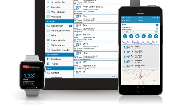 Die Auto-App mehr-tanken zeigt Benzinpreise bei tausenden Tankstellen in Eurer Umgebung an. Es werden auch historische Daten angeboten sowie günstige Tank-Zeiten genannt.