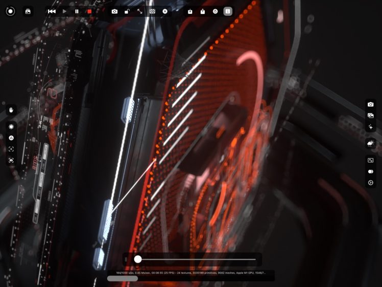 Octane X für iPad Pro unterstützt alle Funktionen der eigenständigen Desktop-Anwendung Octane X macOS durch eine von Grund auf neu gestaltete Oberfläche, die eine einfache Szenennavigation und -bearbeitung mit Touch und Apple Pencil auf dem iPad Pro ermöglicht.
