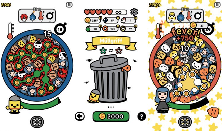 In dem Titel füllt sich ein Kreis mit Gesichtern von Figuren. Mit dabei sind auch einige bekannte Emojis. Eure Aufgabe besteht darin, den Kreis so schnell wie möglich zu leeren, um mehr Platz für neue Gesichter zu schaffen.