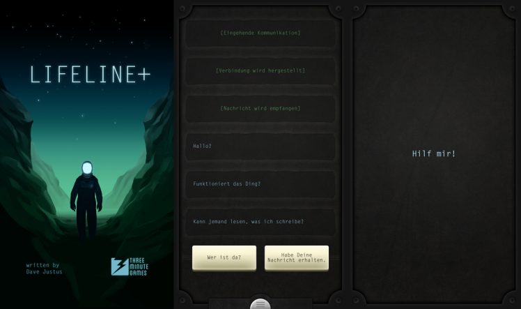 Lifeline hat eine neue Erzählform etabliert, ermöglicht durch moderne Technologien. Die Geschichte läuft in Echtzeit ab: Taylor kämpft ums Überleben und sendet Dir laufend Nachrichten in Form von Benachrichtigungen. Beantworte sie sofort oder antworte zu einem späteren Zeitpunkt.
