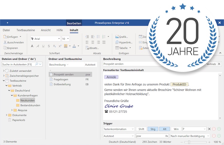 Zum 20-jährigen Jubiläum der Textbausteinverwaltung PhraseExpress wird die App kostenlos.
