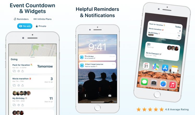 Die App beinhaltet eine Reihe von Countdowns und Widgets. Diese präsentieren Euch sehr schön übersichtlich, wie lange es noch bis zu einem Event dauert.