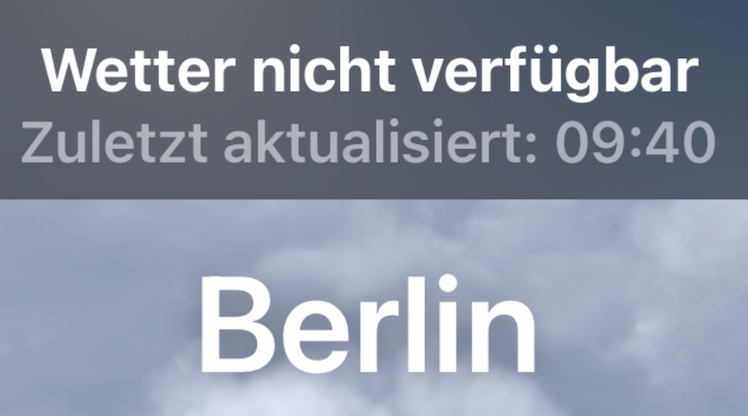 Die Probleme häufen sich und treten nicht erst seit heute auf. Auch in den vergangenen Tagen hatte die Wetter-App von Apple immer wieder Schluckauf.