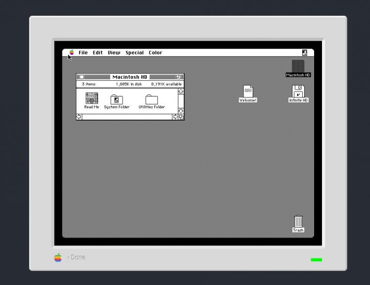 Zur Verfügung stehen System 1.0 von Januar 1984 bis zu Mac OS 9.0.4 aus 2000. Ihr könnt auch wählen, welches Mac-System Ihr simulieren wollt.