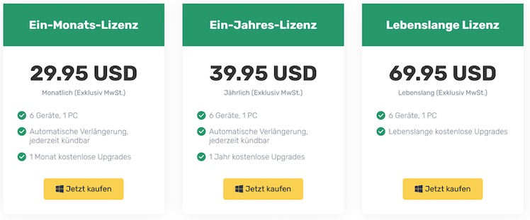 Der Passvers iPhone Unlocker bietet drei Optionspläne, um verschiedenen Bedürfnissen gerecht zu werden. Hier sind sie: