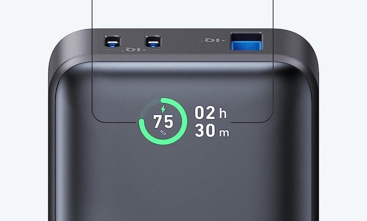 Die Powerbank hat auch ein ansehnliches Display. Hier werden der Akkustand und die verbleibende Nutzungszeit angezeigt. Beim Aufladen erscheint eine Abschätzung, wann der Akku wieder voll sein wird.