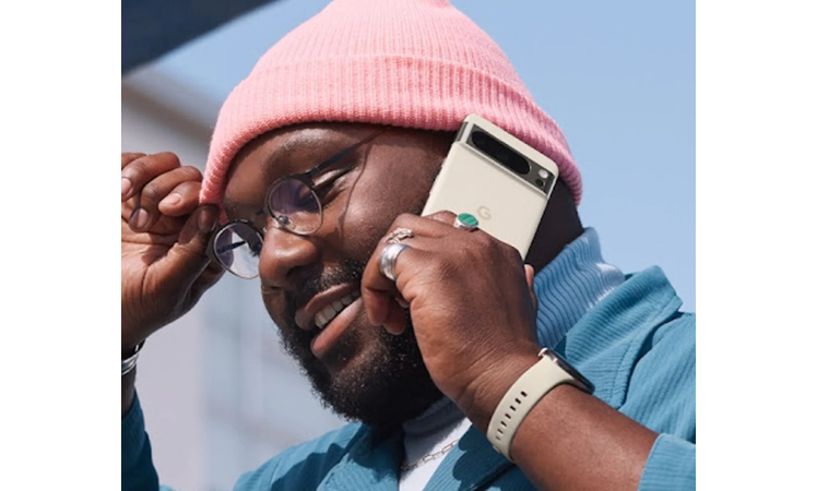 Zu sehen ist ein Mann, der mit dem Smartphone telefoniert. Mehr noch: Die Bildbeschreibung bestätigt, dass es sich dabei um ein Pixel 8 Pro handelt. Damit ist das Design des Geräts offiziell bekannt.