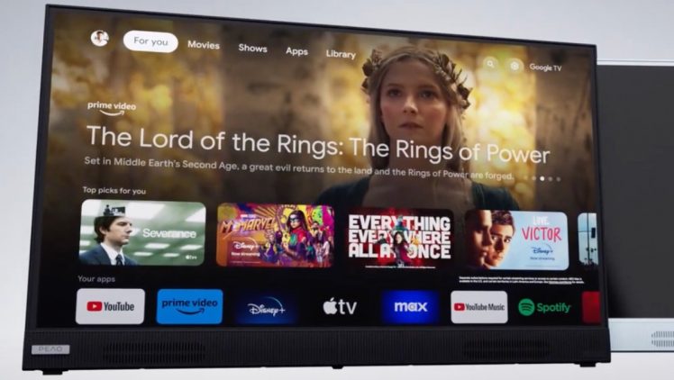 Mit einer Akkuladung sind bis zu vier Stunden Streaming möglich. Als Software ist Google TV vorinstalliert und bringt Zugriff auf Netflix, YouTube, Amazon Prime Video und viele mehr.