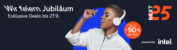 Der Händler wird 25 Jahre alt und feiert dies mit den NEXT25-Angeboten. Bis Mittwoch sind verschiedene Produkte teils stark reduziert.