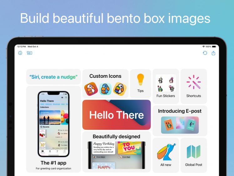 Die iPad-Anwendung bietet eine Reihe von Vorlagen, in die Ihr Eure Bilder einfügen könnt. Primären Nutzen sehen die Entwickler im Bereich Marketing.