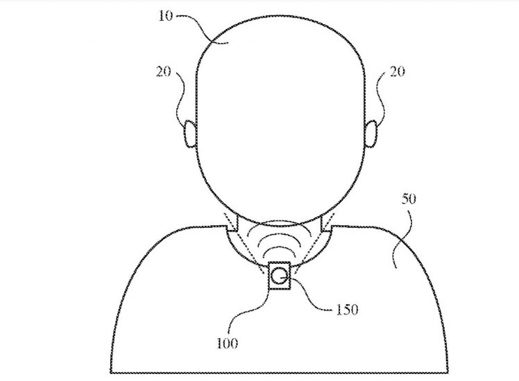 In einem neuen Patent wird ein „Wearable Device with directional audio“ beschrieben. Dieses kann zum Beispiel an einem Kleidungsstück befestigt werden.