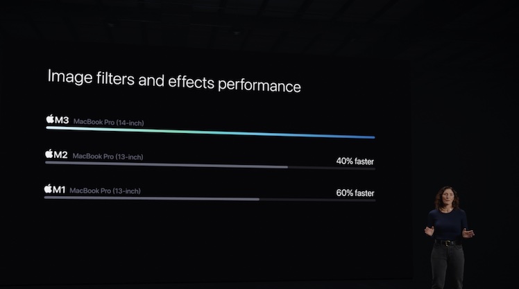 Apple bezeichnet die neue M3-Familie als „Monster-Upgrade“. Natürlich wird es „als bestes Laptop aller Zeiten“ beschrieben. Das Design bleibt im Vergleich zum Vorgänger gleich. Bei einem enormen Performance-Boost, wie die Grafik zeigt. Bis zu 11x schneller schneller soll es sein. Und Apple preist das neue MB Pro für „alle User, die noch Modelle mit Intel-Chips besitzen“ an.