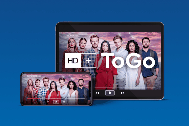 „Mit der HD+ App kannst du immer und überall fernsehen: zuhause über WLAN oder unterwegs über das Mobilfunknetz. Auf deinem Smartphone oder Tablet streamst du über 80 HD-Sender – auf bis zu 2 Geräten gleichzeitig und ohne Zusatzkosten im EU-Ausland.“