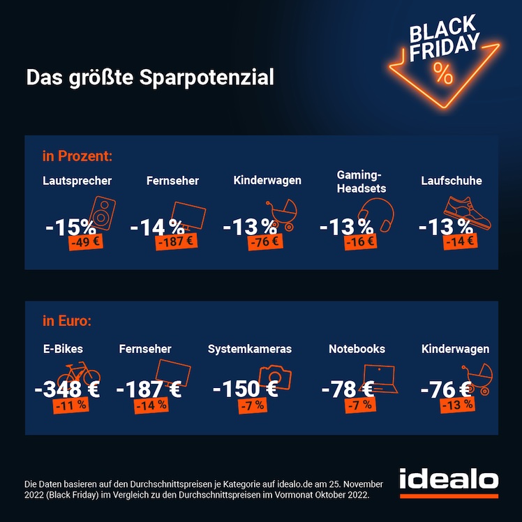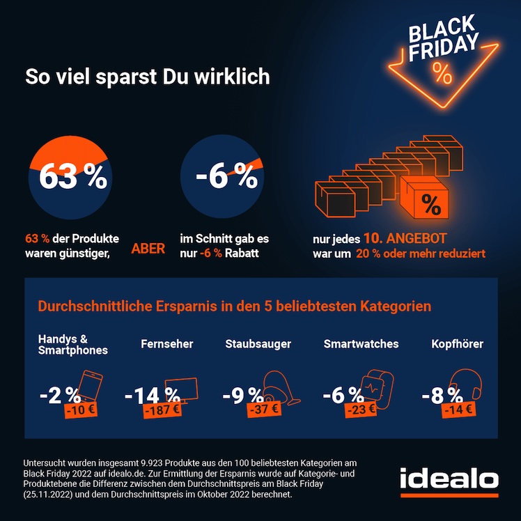 Die Wichtigste vorab: Viele Deals lohnen sich kaum – das zeigt die Deal-Analyse von idealo. Laut der Plattform liegt die durchschnittliche Ersparnis „am Black Friday […] bei gerade einmal 6 Prozent. Nur etwa jedes zehnte Black-Friday-Angebot war um mehr als 20 Prozent reduziert.“