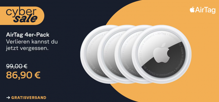 Daher machen wir es auch kurz: Cyberport bietet im Tages-Sale 4 AirTags im Paket für nur noch 86,90 Euro an. Bei Amazon werden 109 Euro verlangt.