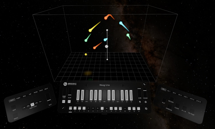Auch Musiker können bereits auf der Brille kreativ werden. Dafür hat der legendäre Synth-Bauer Moog aus Asheville in North Carolina seine für iOS schon lange Zeit verfügbare App Animoog auf visionOS portiert – unter dem Titel Animoog Galaxy.