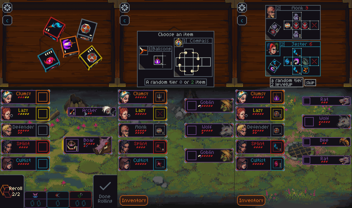 In dem Titel steuert Ihr eine Gruppe von fünf Helden und bekämpft mit ihnen Monster. Für jeden Held gibt es einen Würfel, dessen Seiten seinen möglichen Angriffen entsprechen.