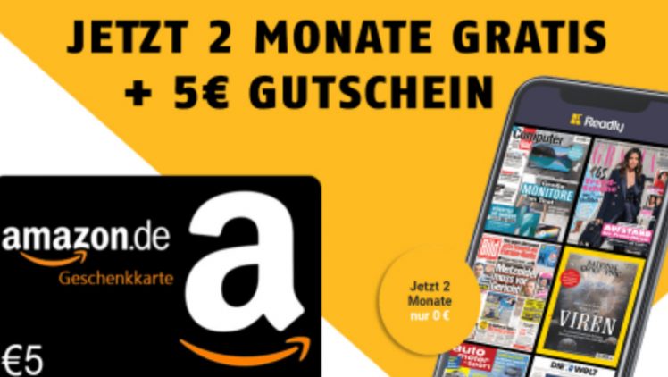 Das Angebot beinhaltet zwei Monate Readly gratis und dazu einen 5-Euro-Amazon-Gutschein.