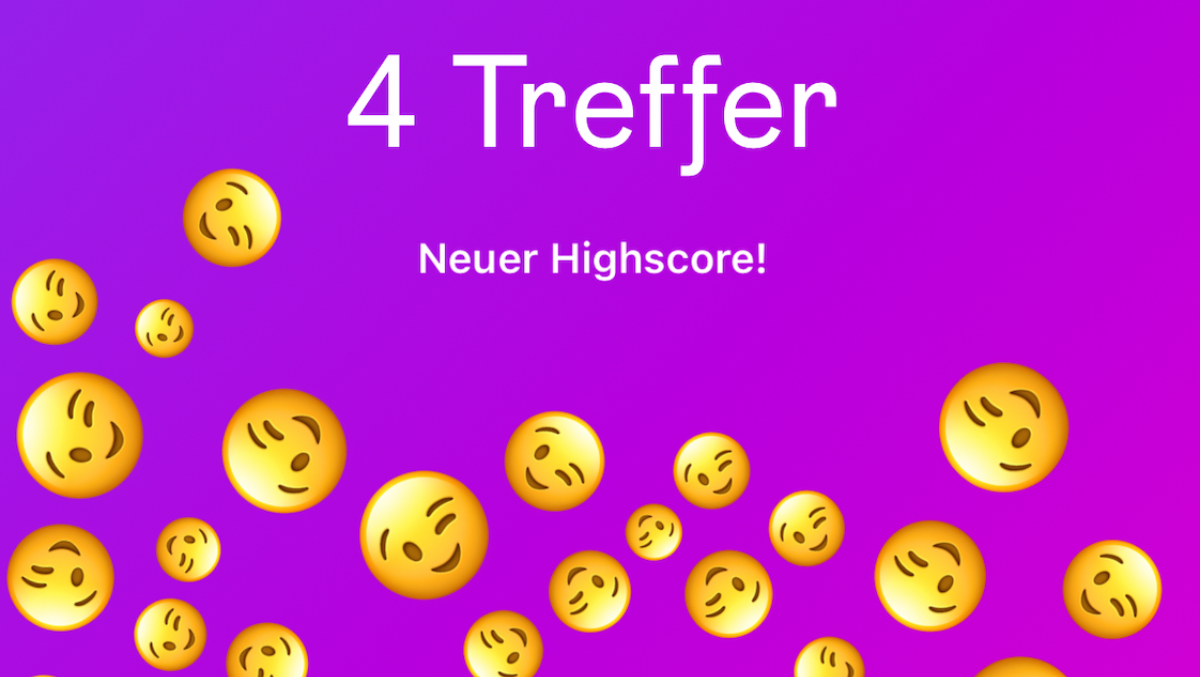 Die Regeln sind einfach. Ihr wischt das „Brett“ unten möglichst oft nach links und rechts, um zu verhindern, dass das Emoji ins Leere fällt. Wir liegen aktuell bei 28…