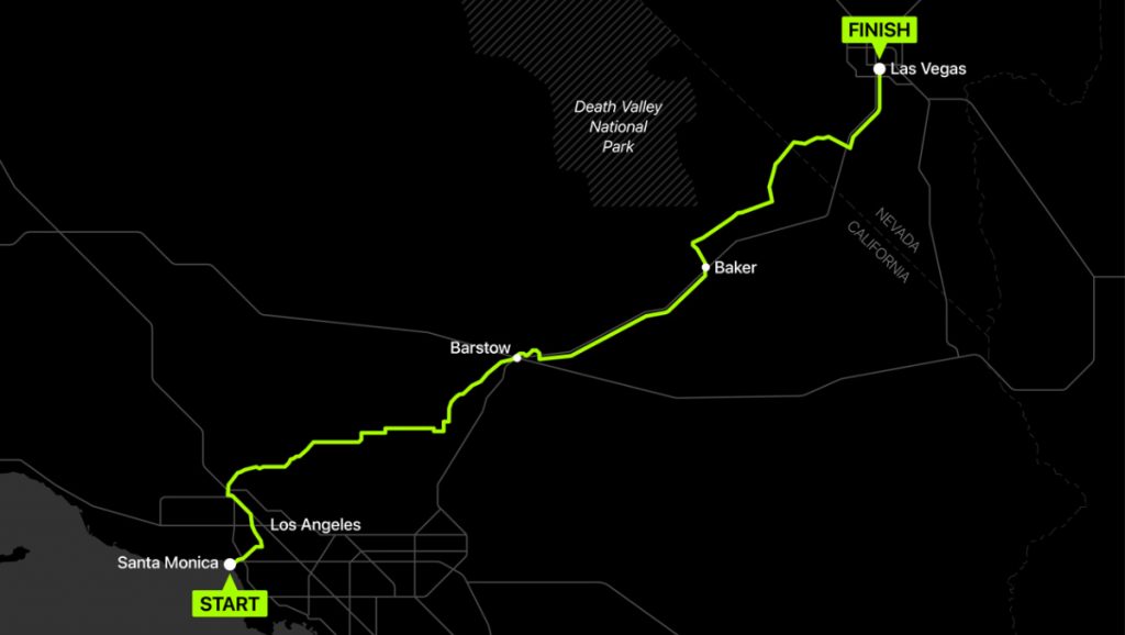 Diese Strecke verläuft zwischen Los Angeles und Las Vegas – und zwar über Straßen und Autobahnen, durch die Mojave-Wüste. Apple begleitete ein 12-köpfiges Läuferteam des Koreatown Run Clubs aus Los Angeles und des Old Man Run Clubs in New York City.