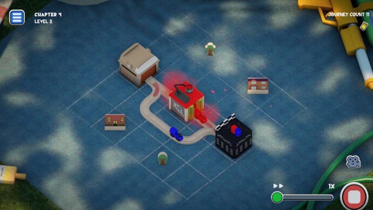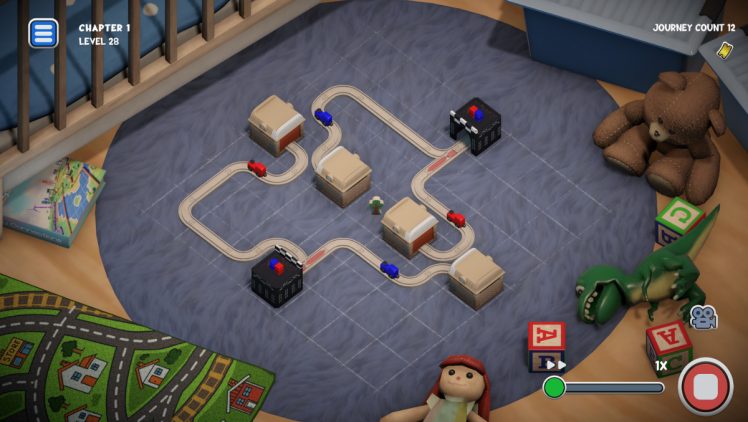 Das Konzept von „Teeny Tiny Trains“ ist schnell verinnerlicht: Ihr müsst auf einem Spielfeld Schienen verlegen, damit Züge von einem Startpunkt zu einem Ziel gelangen. In den ersten Leveln gestaltet sich dies recht einfach, doch die Schwierigkeit nimmt zu, da neue Spielelemente wie Weichen und Kreuzungen hinzukommen und die Reihenfolge der Züge beachtet werden muss, um ein Level erfolgreich zu beenden.