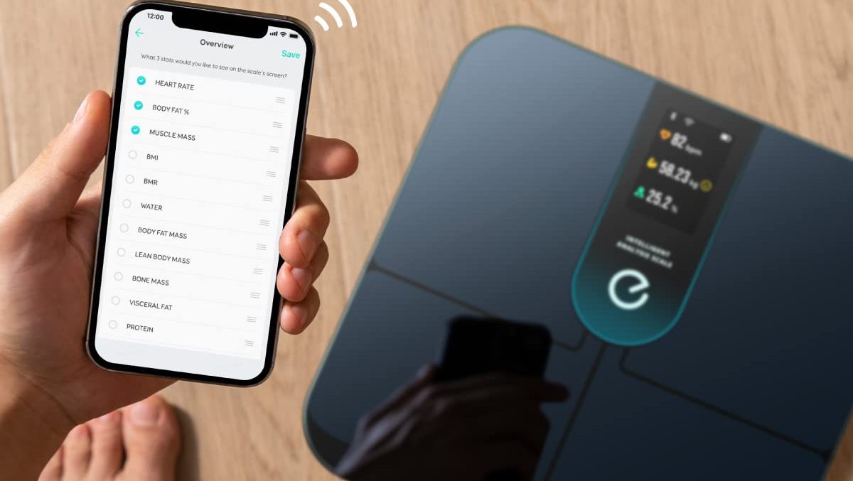 Die Waage kann nicht nur das Gewicht bestimmen. Sie erlaubt auch die Anzeige von Muskelmasse, Herzfrequenz und weiteren Metriken.