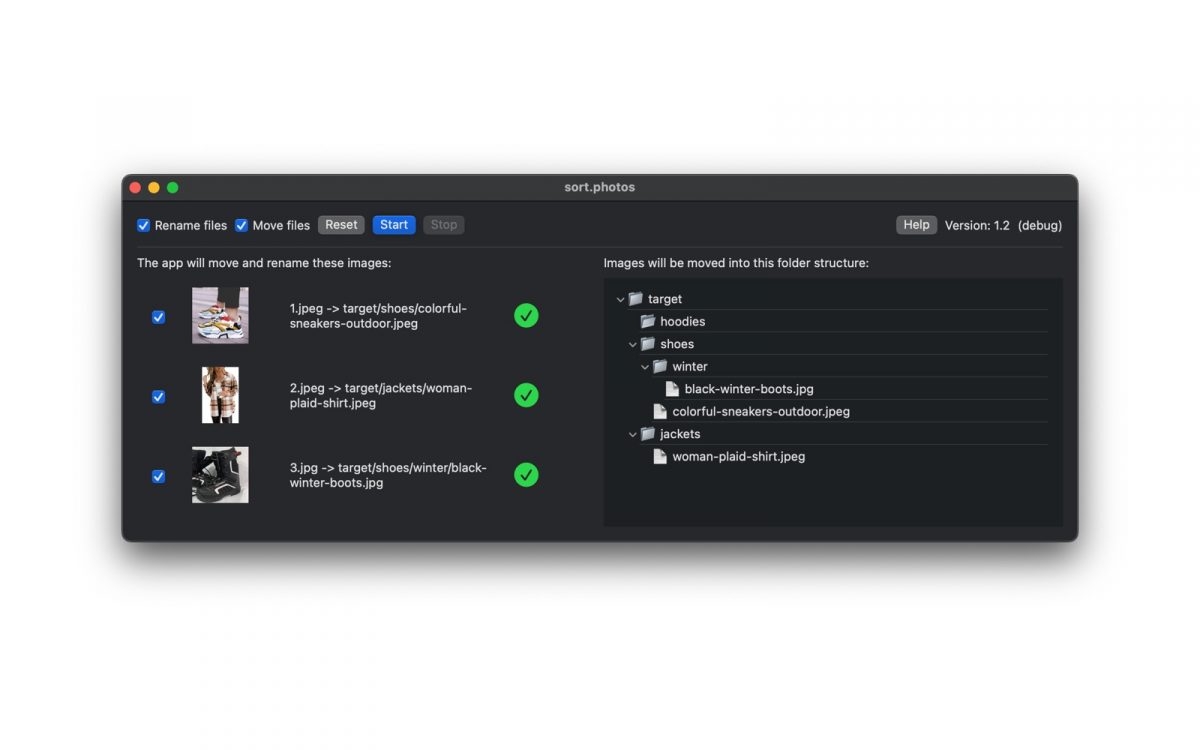 Die Anwendung nutzt künstliche Intelligenz, um Eure Bilder umzubenennen. Die Dateinamen werden so gewählt, dass sie die Motive der Bilder beschreiben.