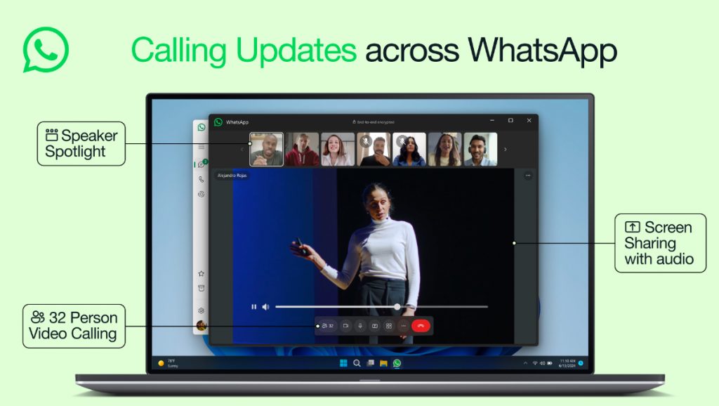 Zusätzlich zu den erweiterten Teilnehmergrenzen hat WhatsApp nun die Möglichkeit zur Bildschirmfreigabe mit Audio integriert, was sich besonders für Präsentationen eignet. Eine weitere neue Funktion ist „Speaker Spotlight“, so könnt erkennt ihr während eines Anrufs, wer gerade spricht.