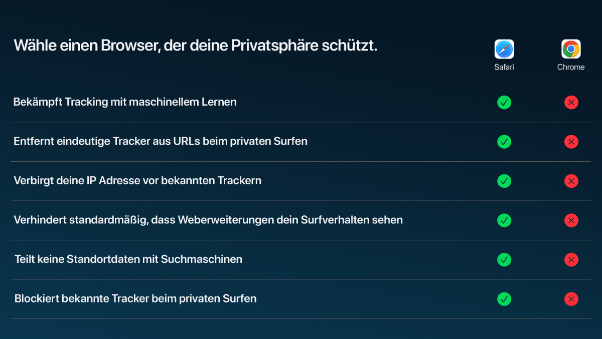 Dabei erinnert Apple an die wichtigen Funktionen, die Safari (aber nicht Chrome!) zu eurer Sicherheit implementiert hat.