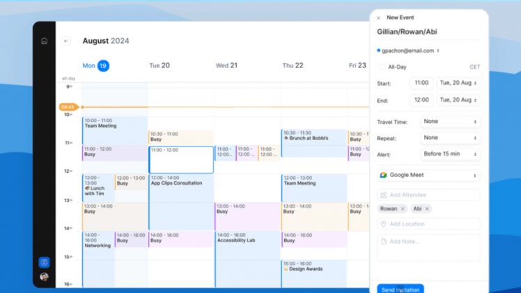 Spark: Durch die neue Funktion „Termin mit“ wird euch die Terminfindung über geteilte Kalender erleichtert. Beim Erstellen von Events könnt ihr jetzt Personen einladen, Notizen zu Meetings hinterlegen, die Kollab-Plattform auswählen und mehr.