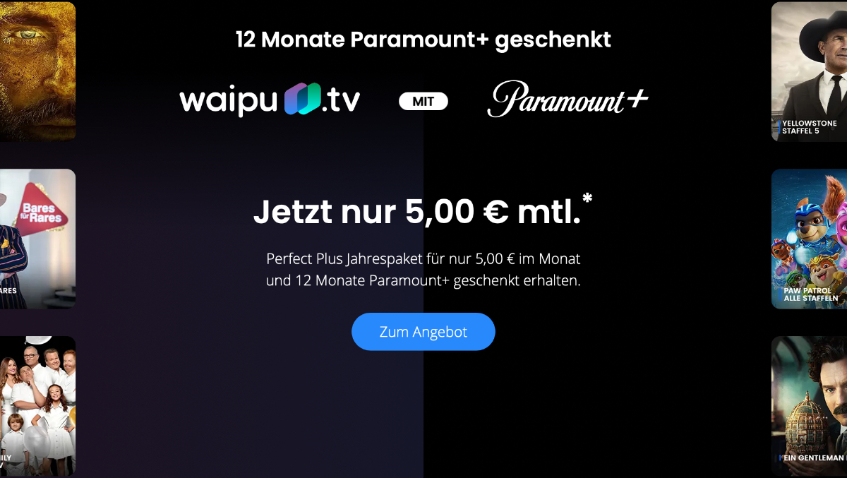 Im Rahmen der Aktion erhalten Neukunden einen satten Rabatt von 50 % auf das Perfect Plus Jahrespaket und zahlen anstatt 9,99 Euro nur 5,00 Euro monatlich. Doch damit nicht genug, denn on top gibt es 12 Monate Paramount+ geschenkt!